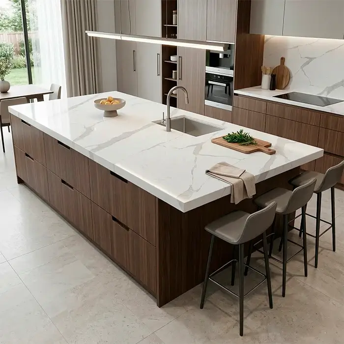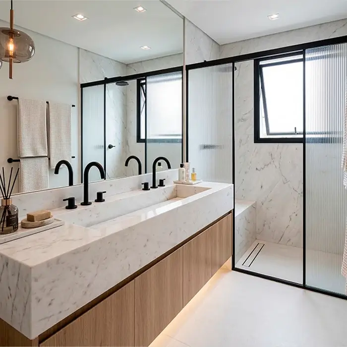 Os quartzos da TaguaPedras Marmoraria combinam a beleza natural com alta resistência a riscos e manchas. Com padrões únicos e durabilidade excepcional, são perfeitos para projetos sofisticados e funcionais.