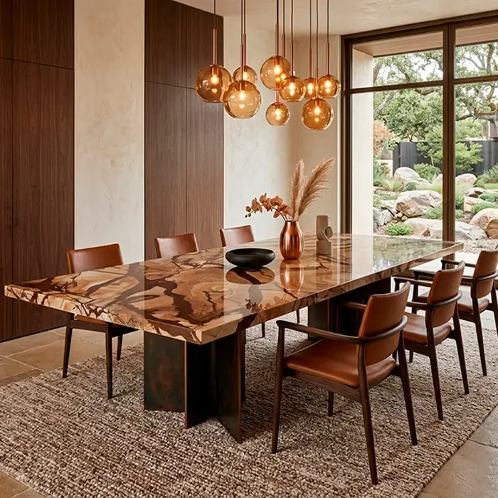 O ônix da TaguaPedras Marmoraria é uma pedra translúcida de beleza única, com veios marcantes que criam ambientes sofisticados. Ideal para projetos personalizados, oferece acabamento polido e versatilidade em aplicações.