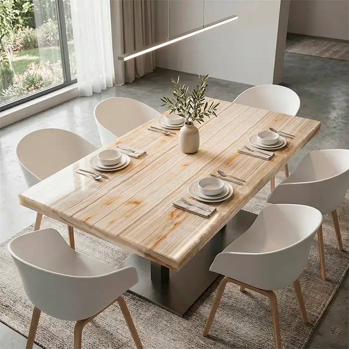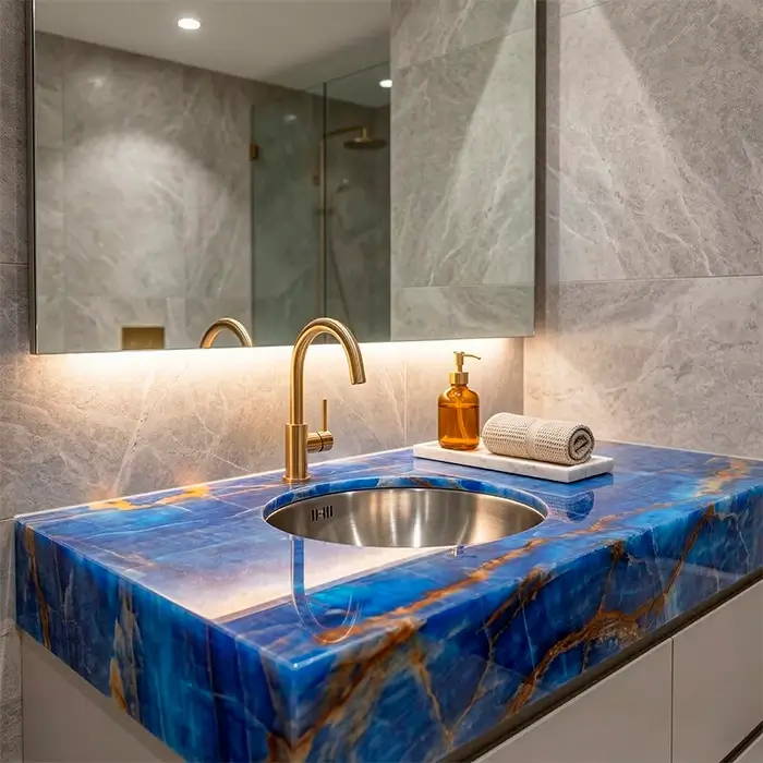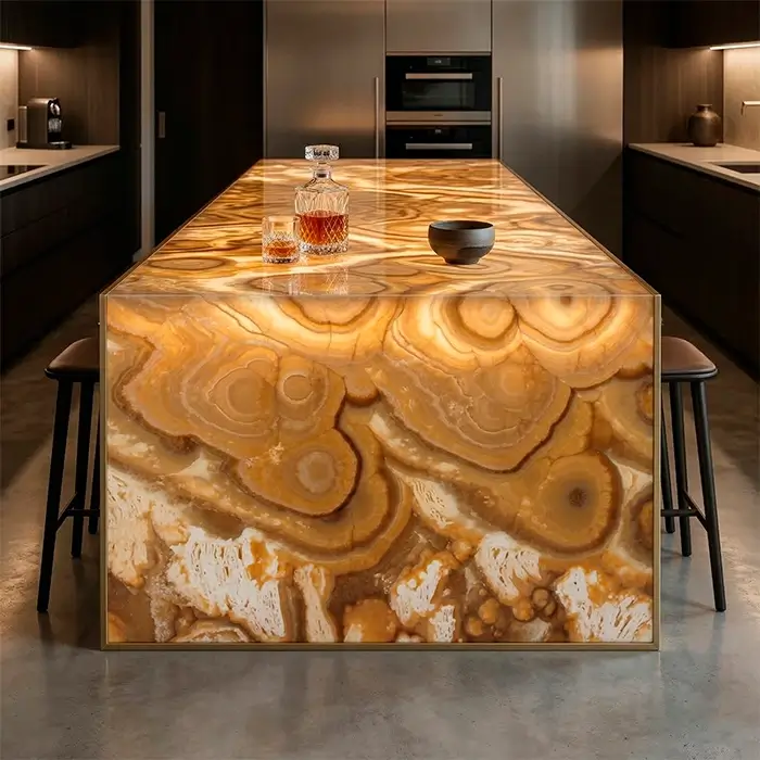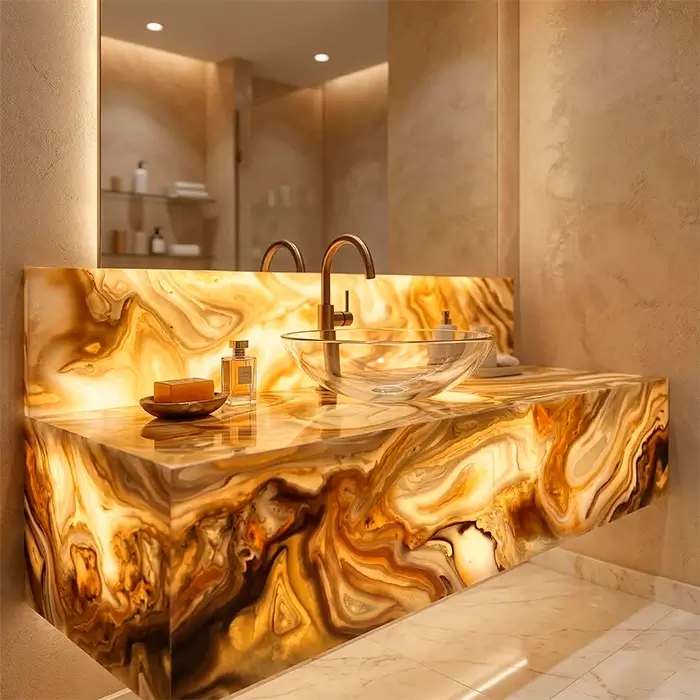 O ônix da TaguaPedras Marmoraria é uma pedra translúcida de beleza única, com veios marcantes que criam ambientes sofisticados. Ideal para projetos personalizados, oferece acabamento polido e versatilidade em aplicações.